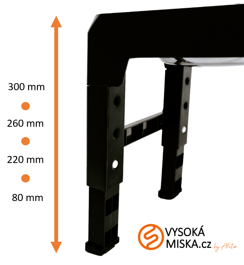 Naše Vysoká miska přináší možnost nastavit výšku od 8 cm do 30 cm.